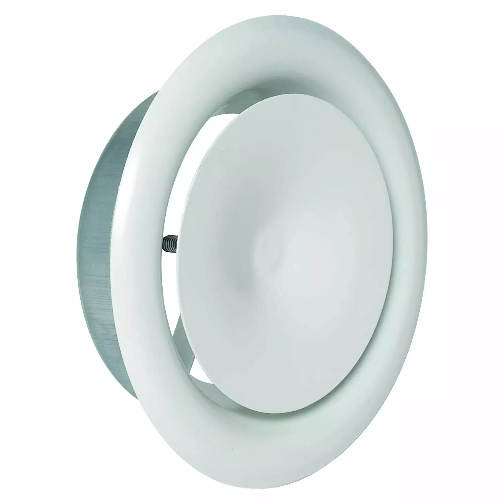 Réf. : ALD 11052207 Bouche de soufflage SR 145 D200 - Acier peinture époxy blanc RAL9010 30% - Débit réglable grâce au noyau blocable par contre-écrou - Anneau extérieur avec joint d'étanchéité - Montage mural/plafond - Manchette raccordement acier fournie