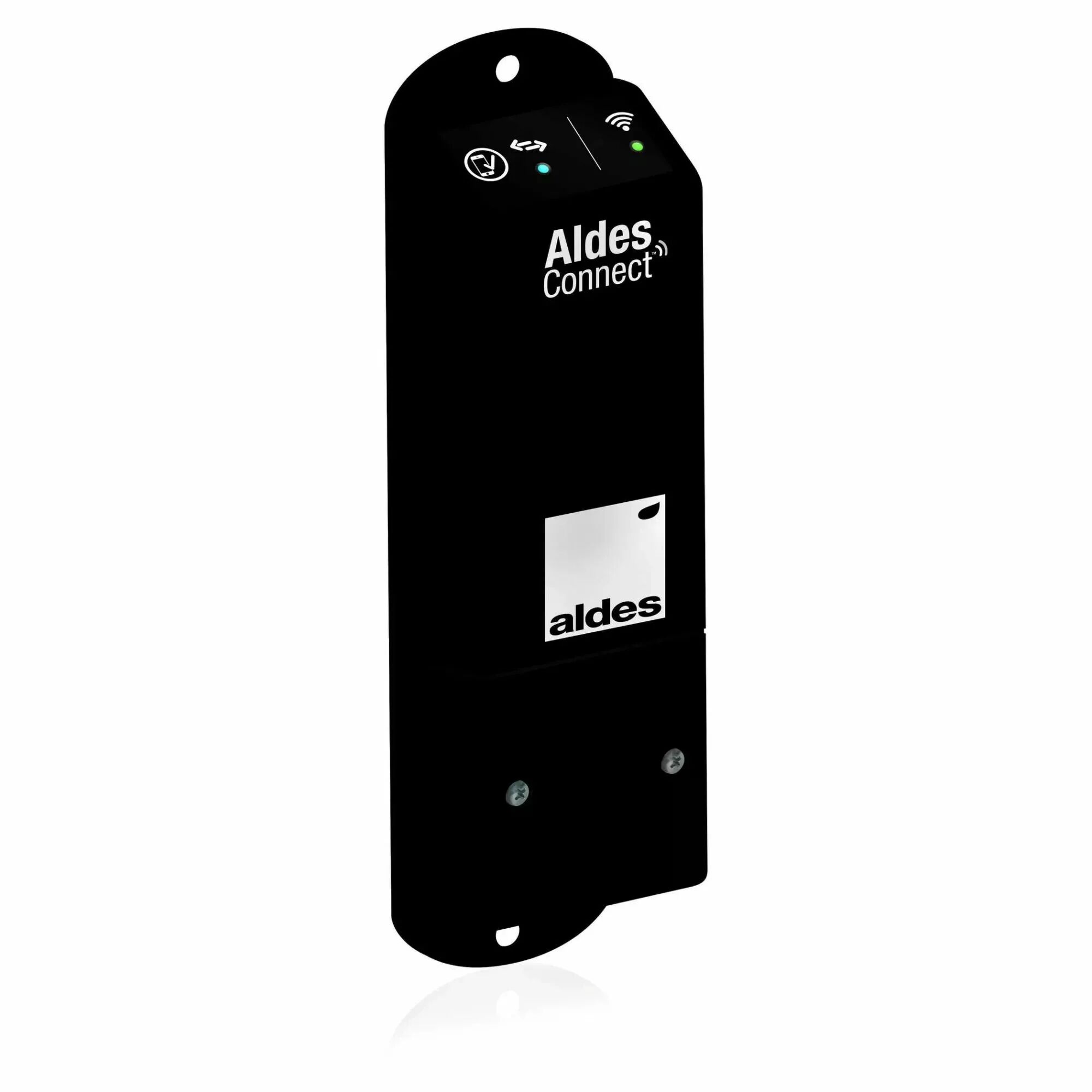 > AldesConnect® Box est un modem domotique Wi-Fi qui permet de connecter les produits de purification d'air et de confort thermique à l'Application : smartphone AldesConnect® (disponible sur iOS et Android).