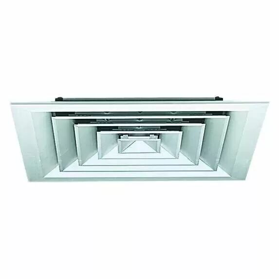 Réf. : ALD 11051005 Diffuseur carré fixe 4 directions pour dalle plafond 600x600 mm AF 704 TP - Soufflage/reprise - 450x450mm - Ossature TBar - Aluminium peint blanc RAL9003 30% - Montage sur le col par vis non apparentes