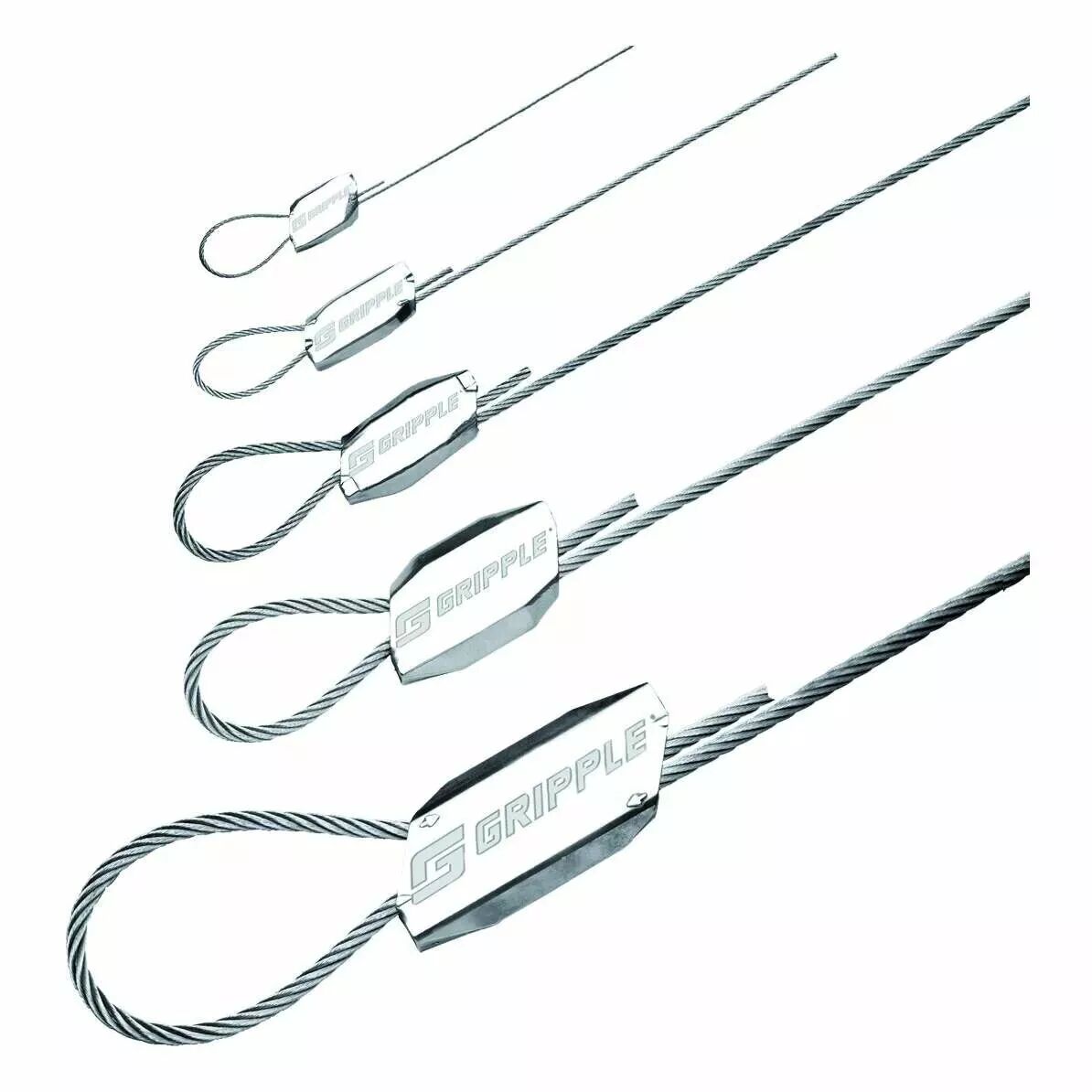 > Câble en acier galvanisé souple équipé d'un embout boucle à une extrémité et libre à l'autre extrémité pour permettre la fixation du produit