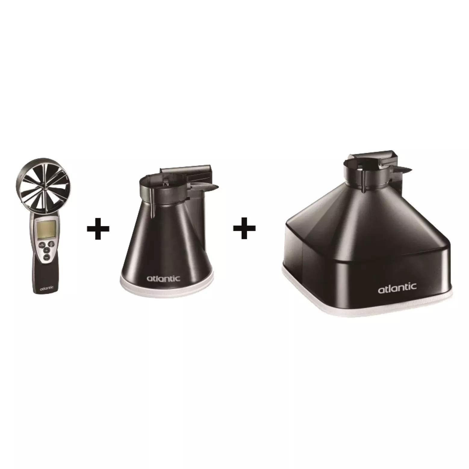 Kit anemo cones - kit anemometre a helice avec 2 cônes - appareils de mesure - sonde à hélice intégrée diamètre 100 - précision 0.01 m/s - ip65 - alimentation pile 9 v - 1 cône diamètre 200 mm et 1 cône 330x330 mm