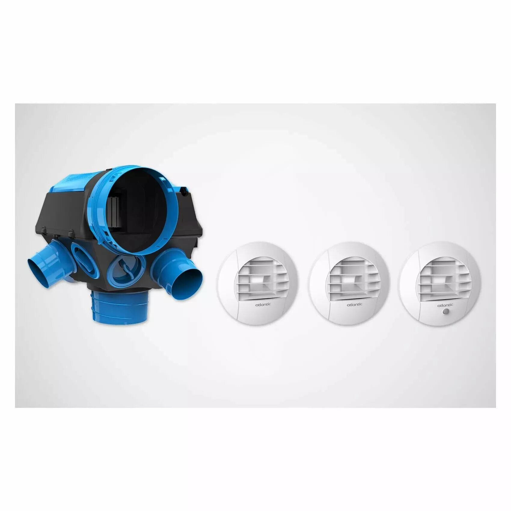 Kit Hygrocosy BC 2 CMI - VMC hygro basse conso - Hygro B T3-T7 - jusqu'à 6 sanitaires - fixation conduits TWIST&GO - 4 bouches piles (WC + SdB + SdE + cuisine) et 5 gaines PVC isolées 25mm : D80 (6m)*3 / D125 (6m) / D160 (3m) - Eligible CEE