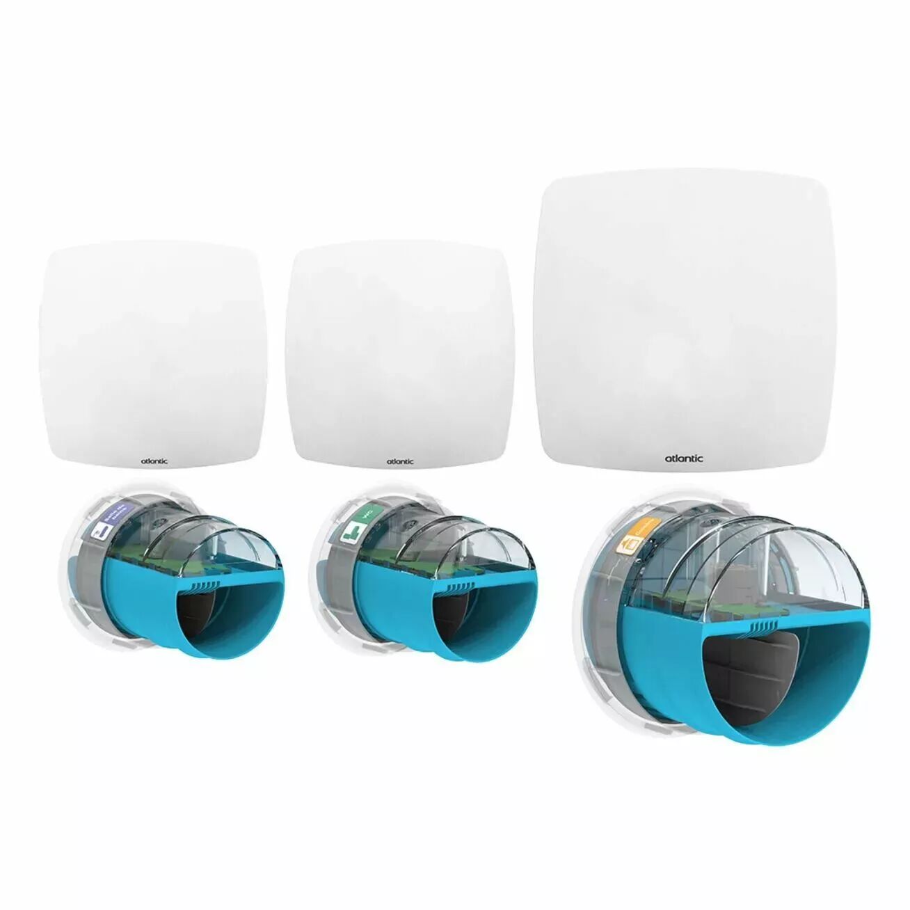Pack 3 Kits e-Twist&Go pour VMC Hygrogenius - Comprend 1 piquage Cuisine (diam. 125mm), 1 piquage Salle de bain (diam. 80mm), 1 piquage WC (diam. 80mm), 3 Bouches Line et 3 manchons à griffe