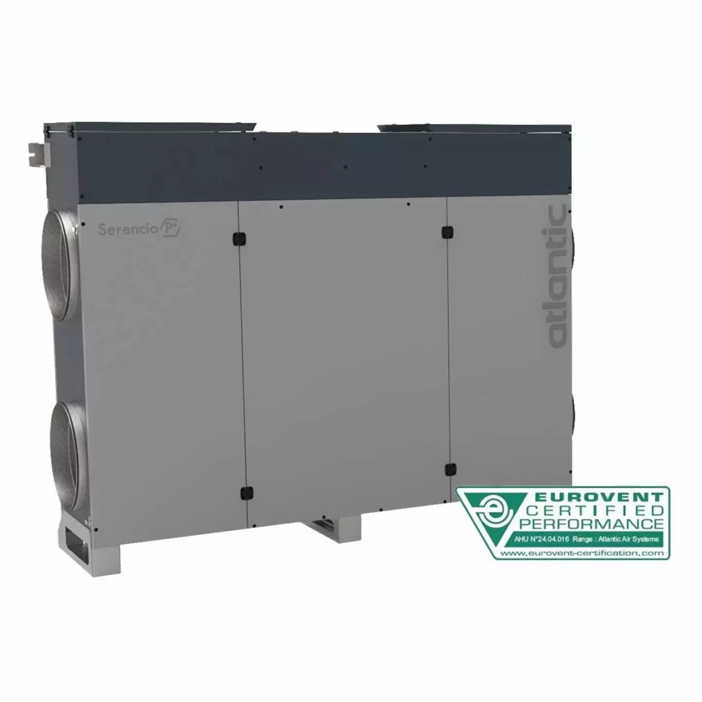 Centrale Serencio P SW 4000 D, DF HR horizontal, échangeur contre-courant - servitude droite - 4000m3/h - isol. 50 mm laine minérale - EN 1886 : D2-L2-F8-T3-TB2 :filtre soufflage ISO ePM1 60% (F7) en std et ISO ePM1 70% (F8) en option
