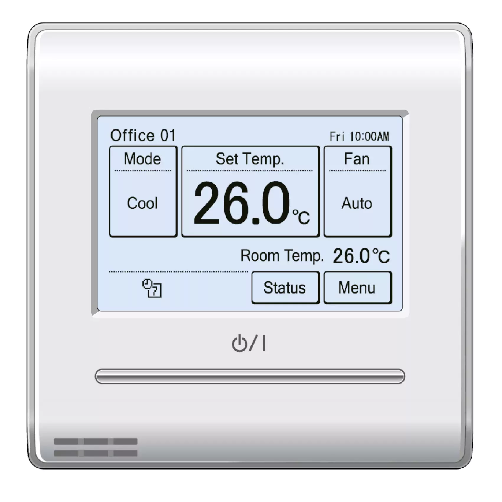 UTY-RNRYZ5 - Télécommande filaire tactile avec sonde de température intégrée, pilote jusqu'à 16 unités intérieures, programmation hebdomadaire, limitation des températures de consigne, mode installateur, mode serveur