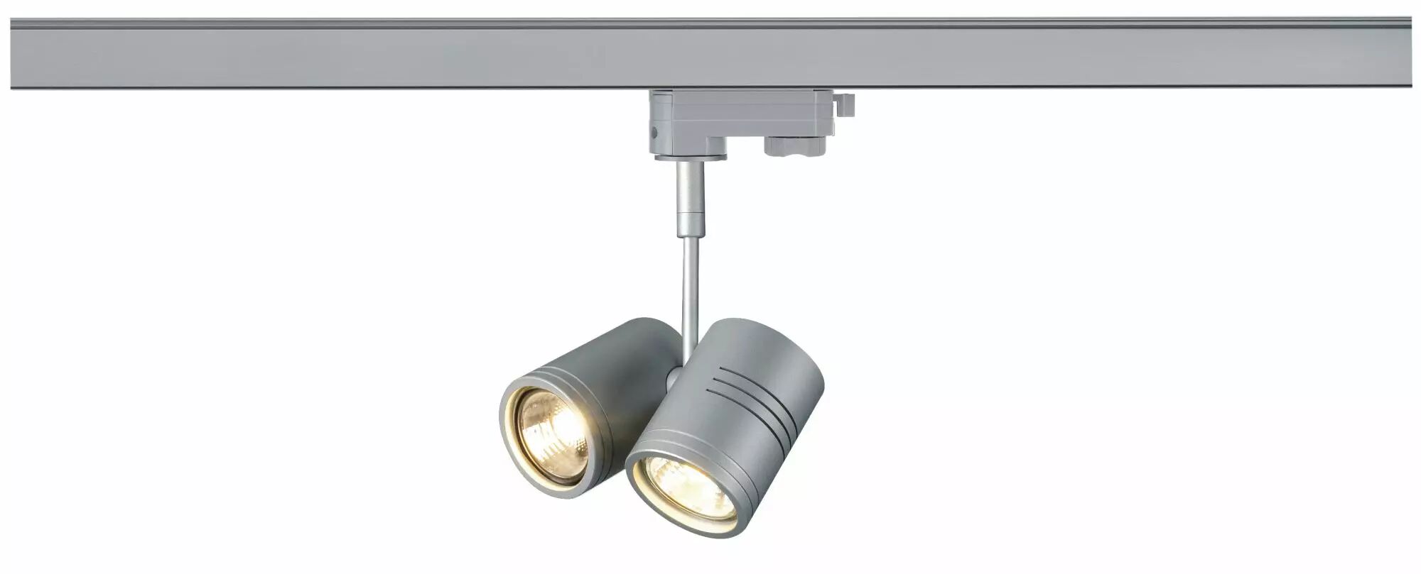 BIMA, spot pour rail 3 allumages, intérieur, double, gris argent, GU10/QPAR51, 2x 50W max (152232)