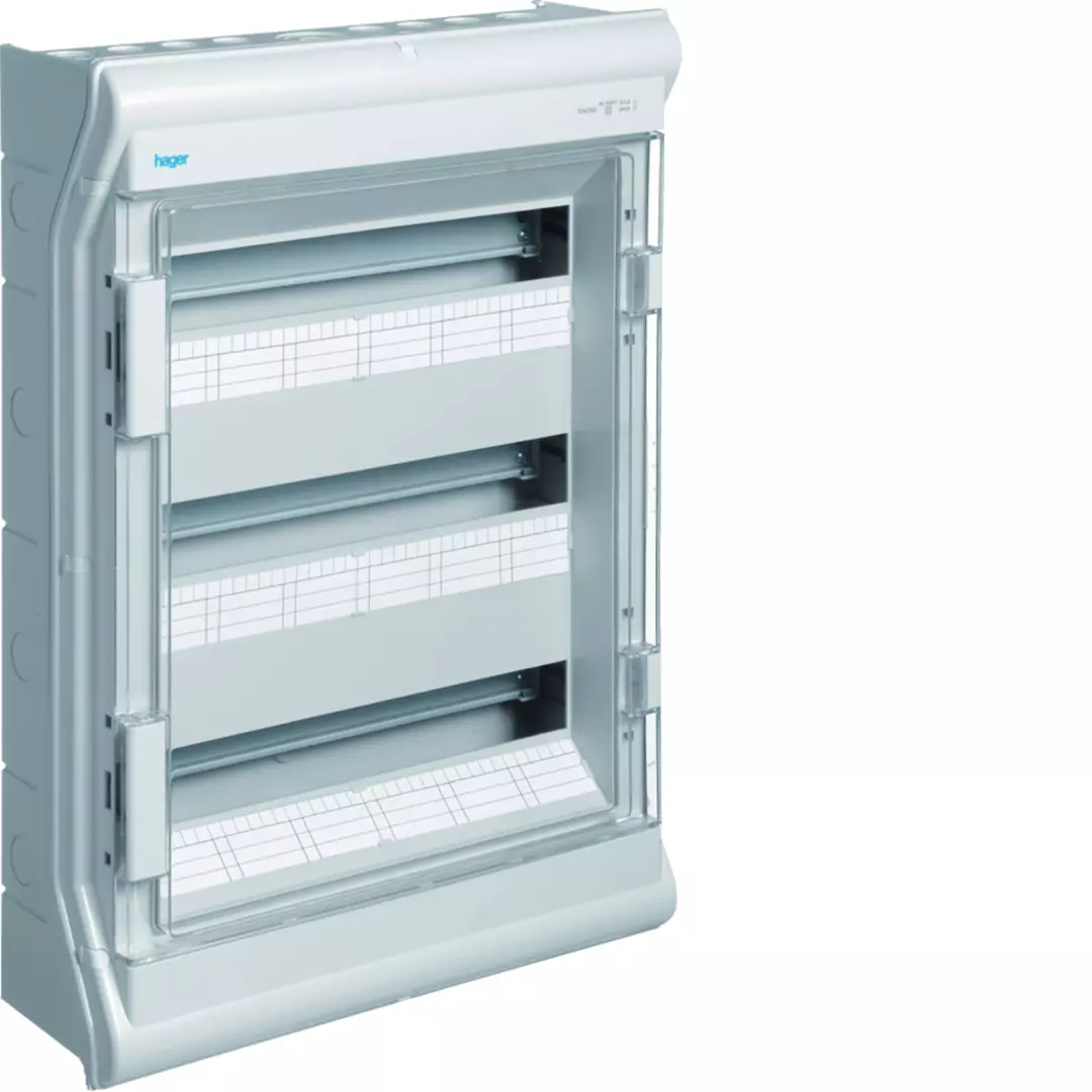 Accueil > Tableau Electrique > Coffret - Armoire - Enveloppe > Coffrets résidentiels > Coffret étanche vector IP55 3 rangées 54 modules h 602mm l 418mm (VE318F)