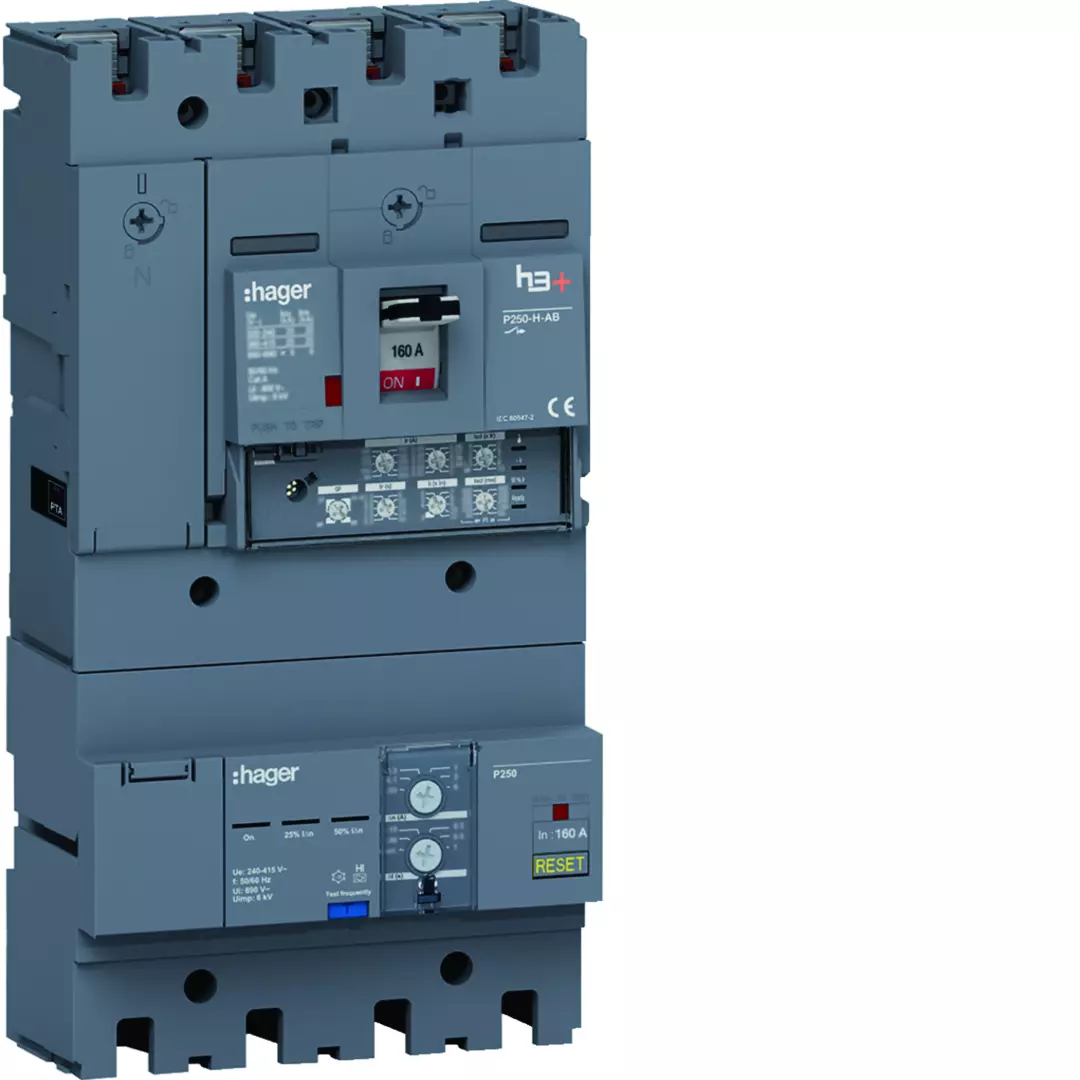 Réf. : HAG HHT161JB Disj. Boitier Moulé h3+ P250 LSI AB 4P4D N0-50-100% 160A 25kA+Bloc dif Idn regl.