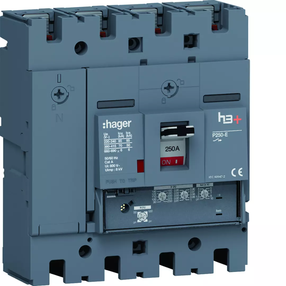 Réf. : HAG HET251GR Disjoncteur Boitier Moulé h3+ P250 LSnI 4P4D N0-50-100% 250A 70kA FTC