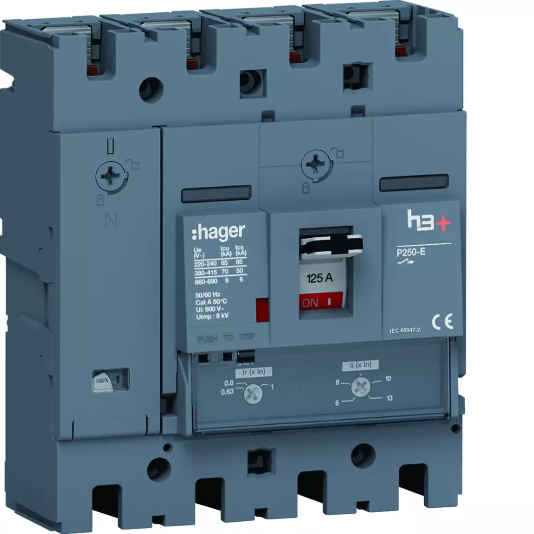 Réf. : HAG HET126DR Disjoncteur Boitier Moulé h3+ P250 TM ADJ 4P4D N0-100% 125A 70kA FTC