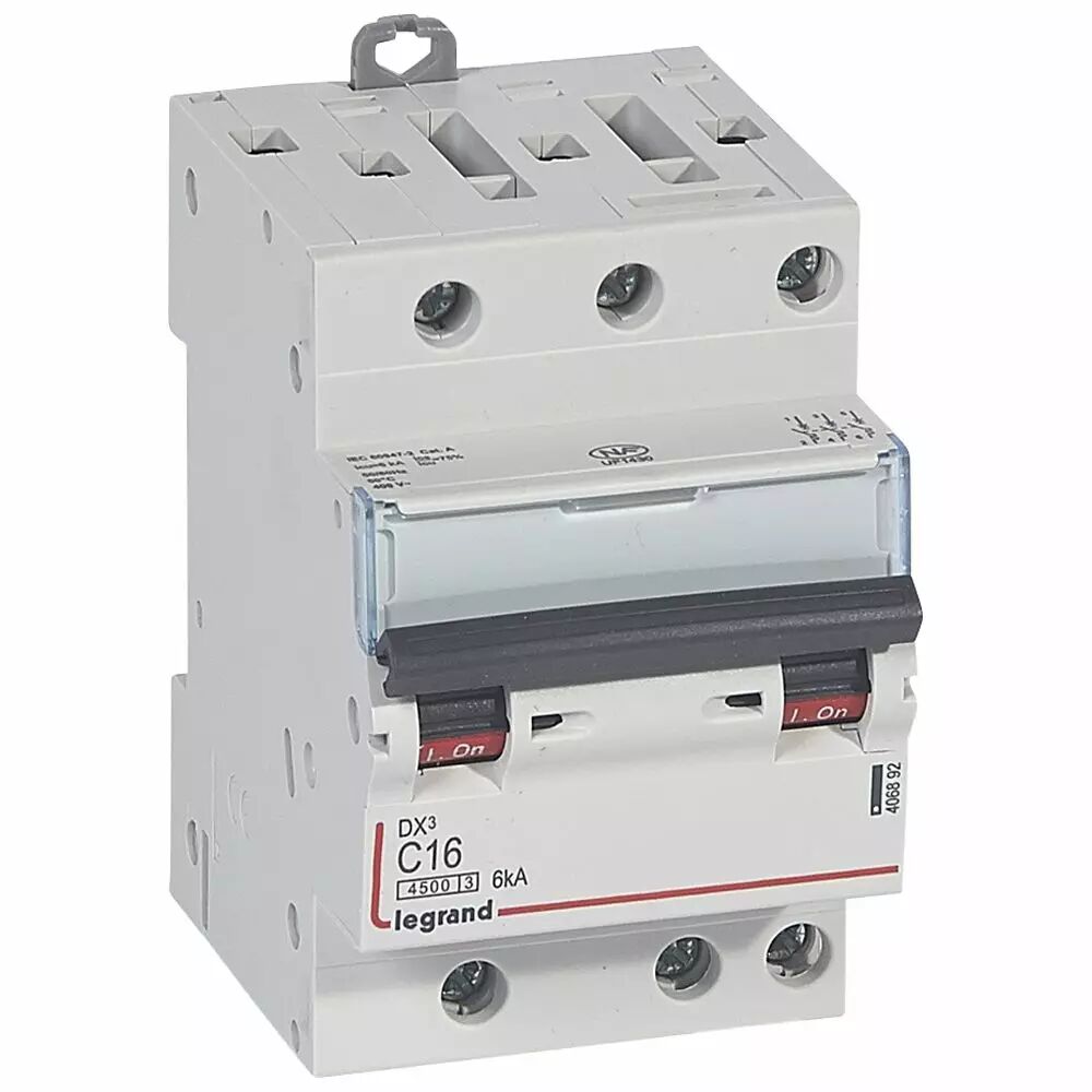 Disjoncteur DX³ 4500 - vis/vis - 3P - 400 V~ - 16A - 6kA - courbe C - 1 mod (406892)