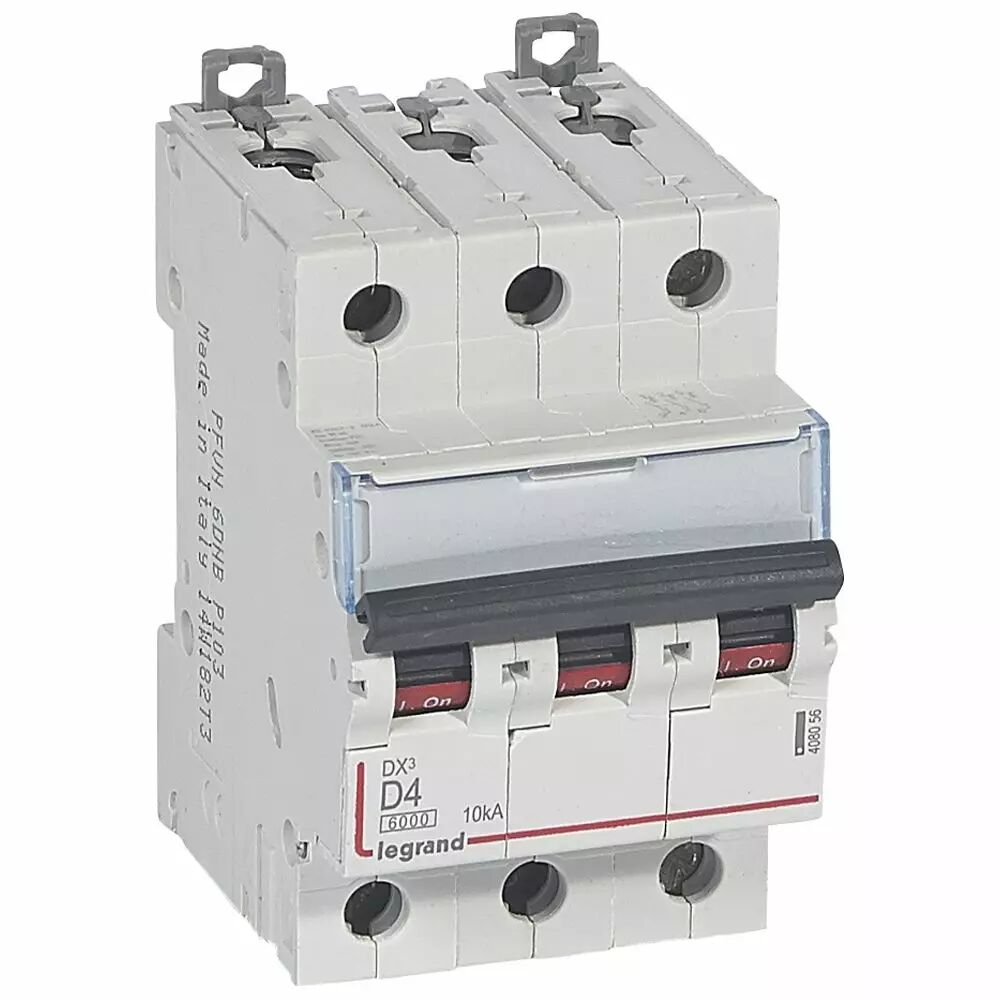 Disjoncteur DX³ 6000-vis/vis-3P-400V~-4A-10kA-courbe D-peigne HX³ trad 3P-3M (408056)