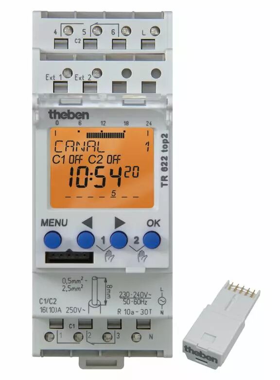 Réf. : THE 6224100 Interrupteur horaire digital 24h 7j 2 module 2 c inv 12 à 24v uc