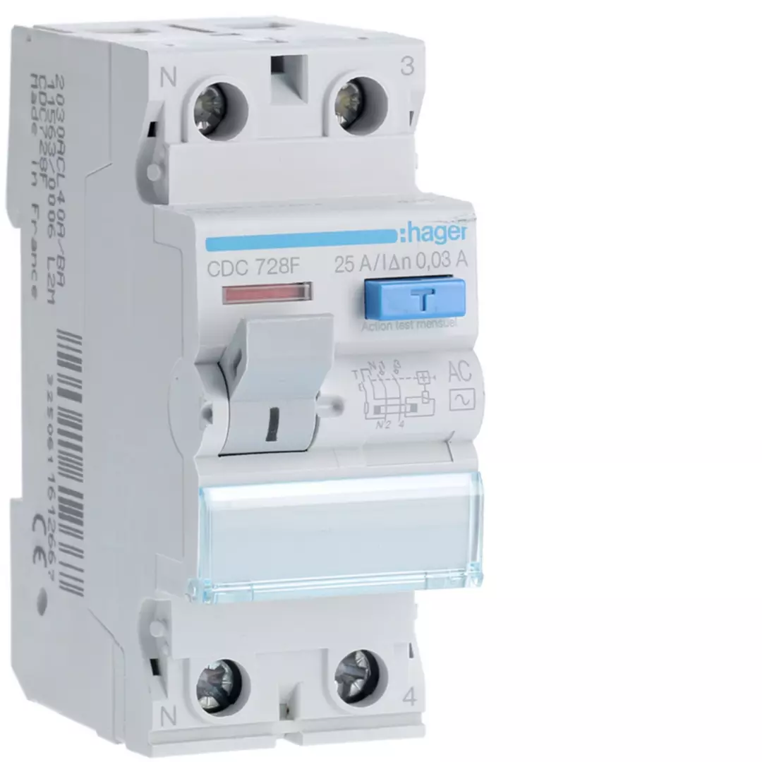 Réf. : HAG CDC728F Interrupteur différentiel 2P 25A 30mA type AC