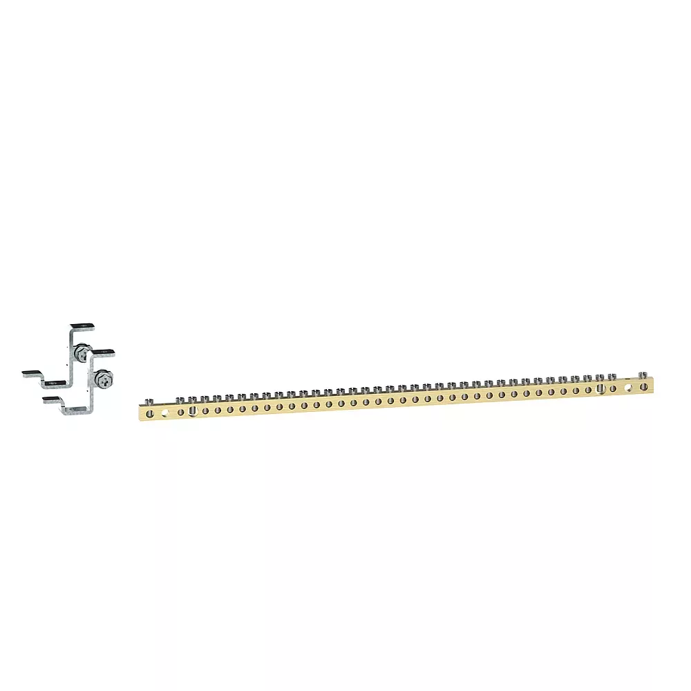 Barreau de terre laiton - avec 38 trous et longueur 416mm à fixer sur supports intégrés dans les coffrets ou sur butée de blocage - pour coffret et armoire de distribution 24 modules XL³HP 630