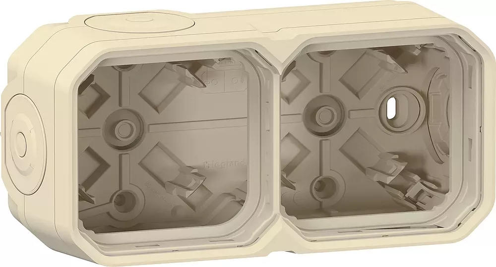 Boîtier saillie à embouts 2 postes horizontaux et verticaux Plexo sable