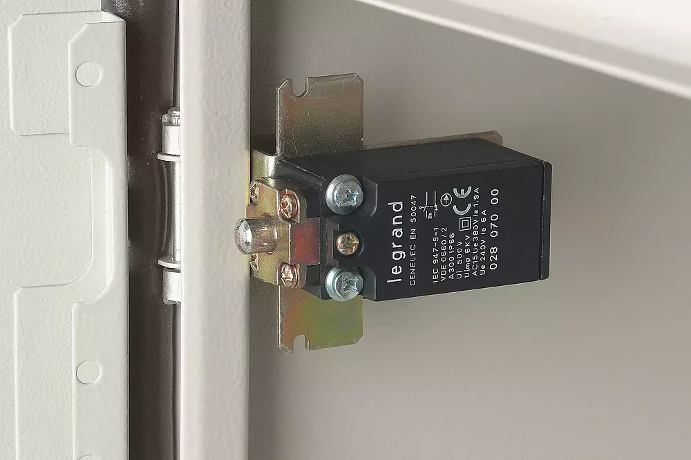 • Permet par exemple, dès l'ouverture de la porte d'un coffret, la coupure des appareils de gestion thermique et l'alimentation de l'éclairage