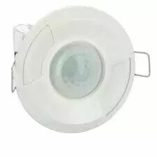 Détecteur blanc ON/OFF pour la gestion de l'éclairage. Montage plafond encastré, 360° sur 14m. Bague coulissante brevetée pour protéger les potentiomètres gradués, câblage rapide et double configuration.