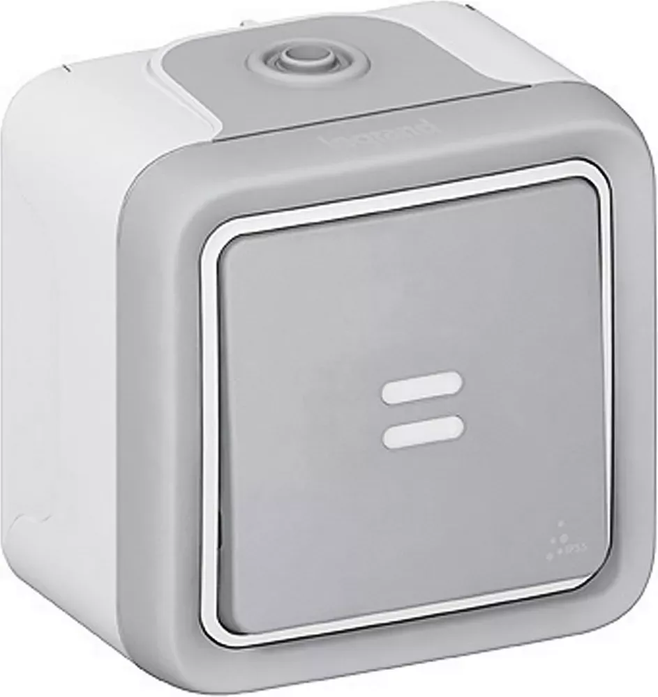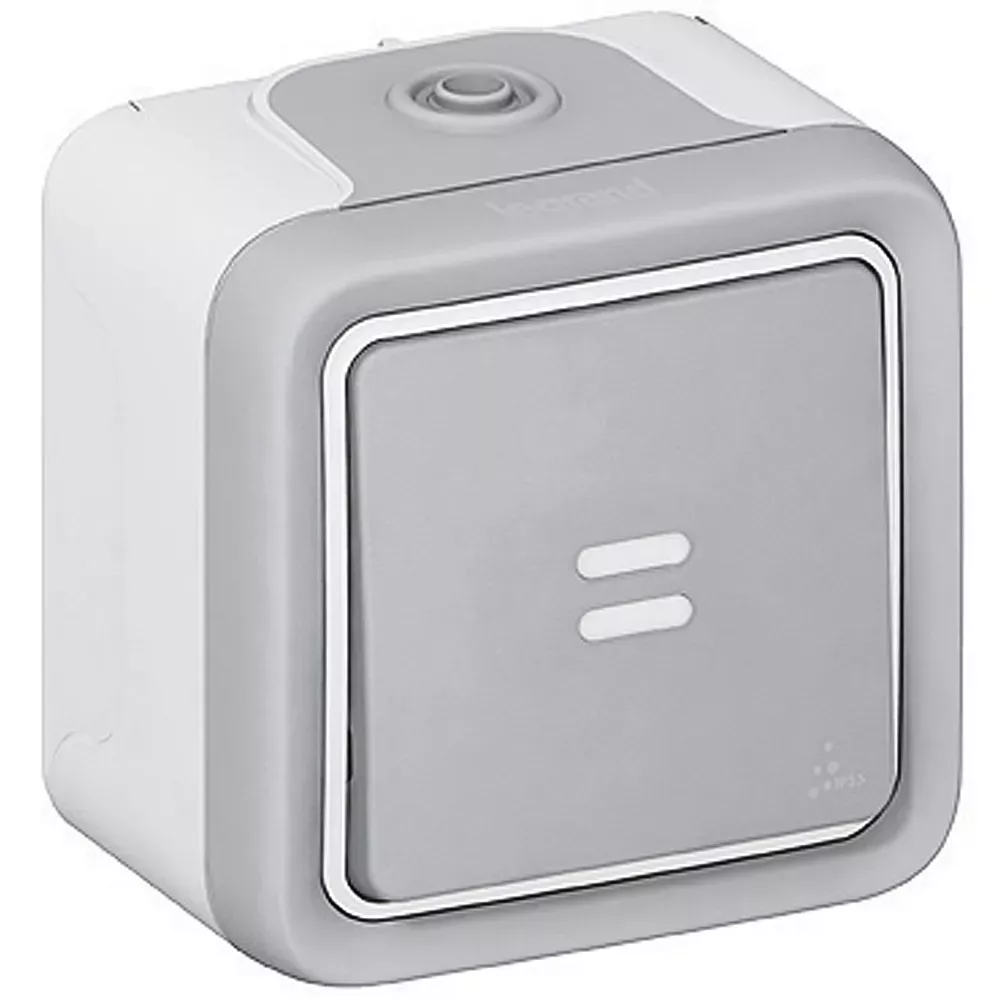 Interrupteur ou va-et-vient témoin étanche Plexo complet IP55 saillie - gris