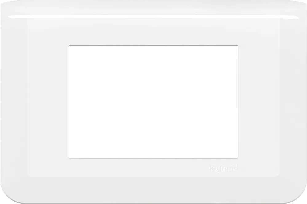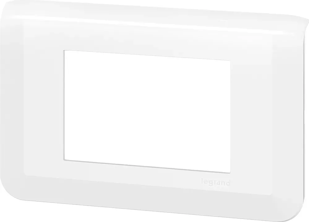 Plaque de finition Mosaic 3 modules blanc RAL9003 finition brillante à clipser sur support Batibox 3 modules - démontage facile et rapide grâce à la présence d'encoches - nouveau design à large chanfrein
