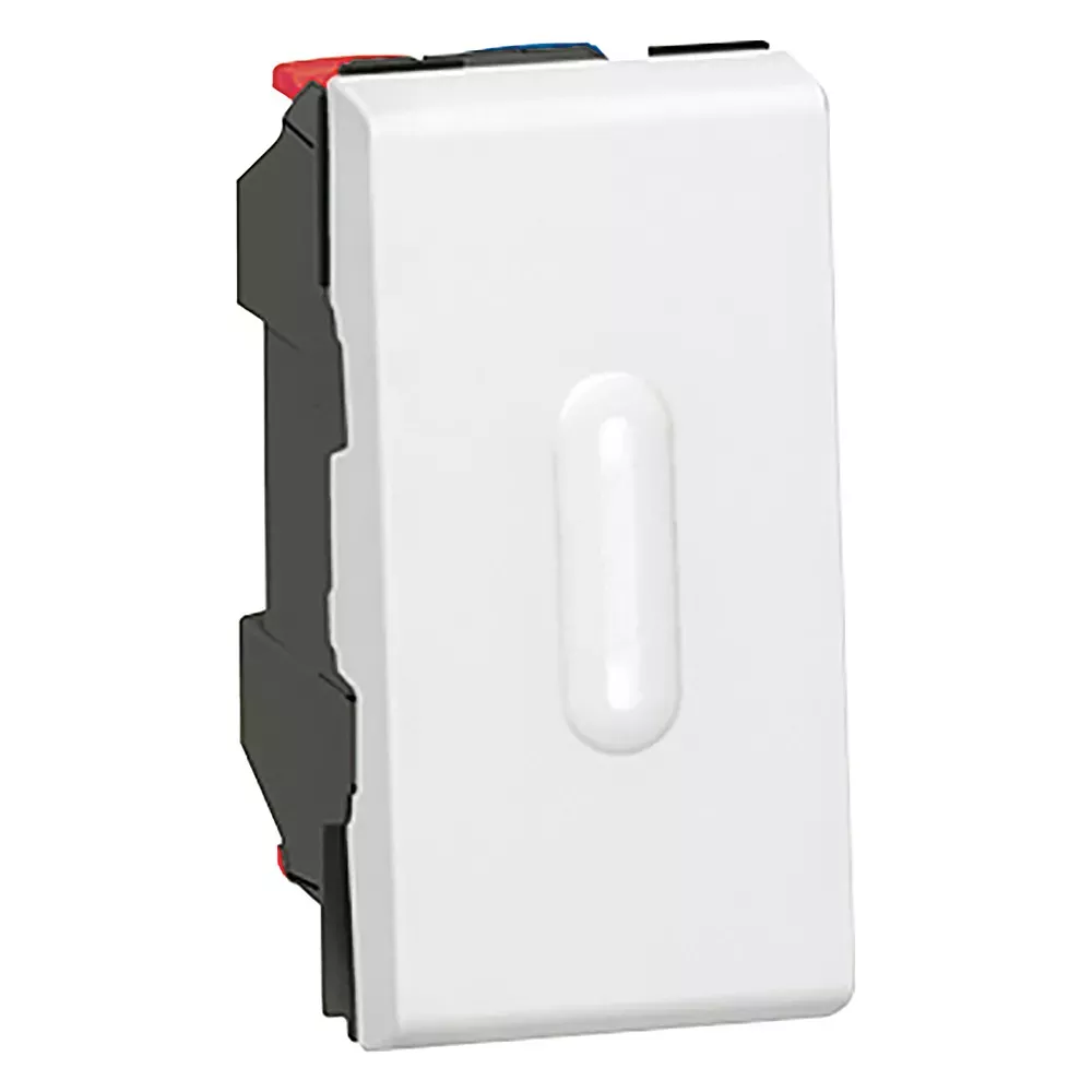 Poussoir témoin avec bornes libres de potentiel 6A - 250V~ Mosaic 1 module à équiper d'un voyant - blanc RAL9003 finition brillante - à équiper d'un support et d'une plaque Mosaic - peut être installé en encastré ou en saillie