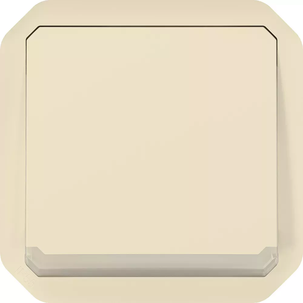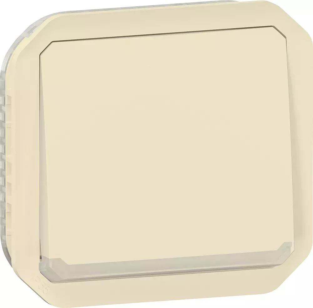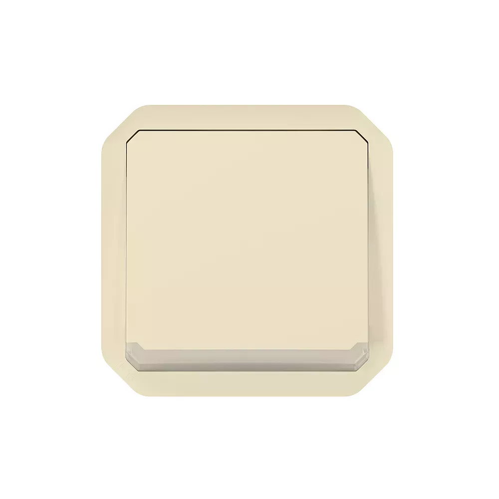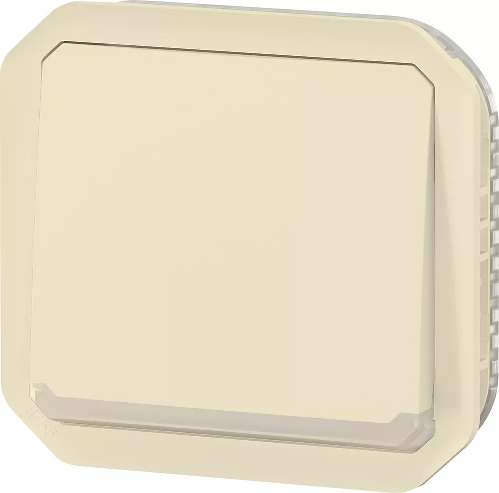Poussoir inverseur NO-NF lumineux étanche Plexo 10A IP55 IK08 à équiper de support plaque ou boîtier saillie, livré avec voyant 230V et enjoliveur sable