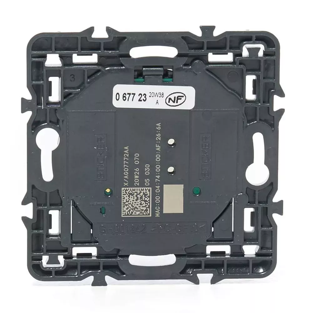 - avec enjoliveur finition Titane, support, plaque et 4 adhésifs repositionnables pour fixation de la commande sur tous supports