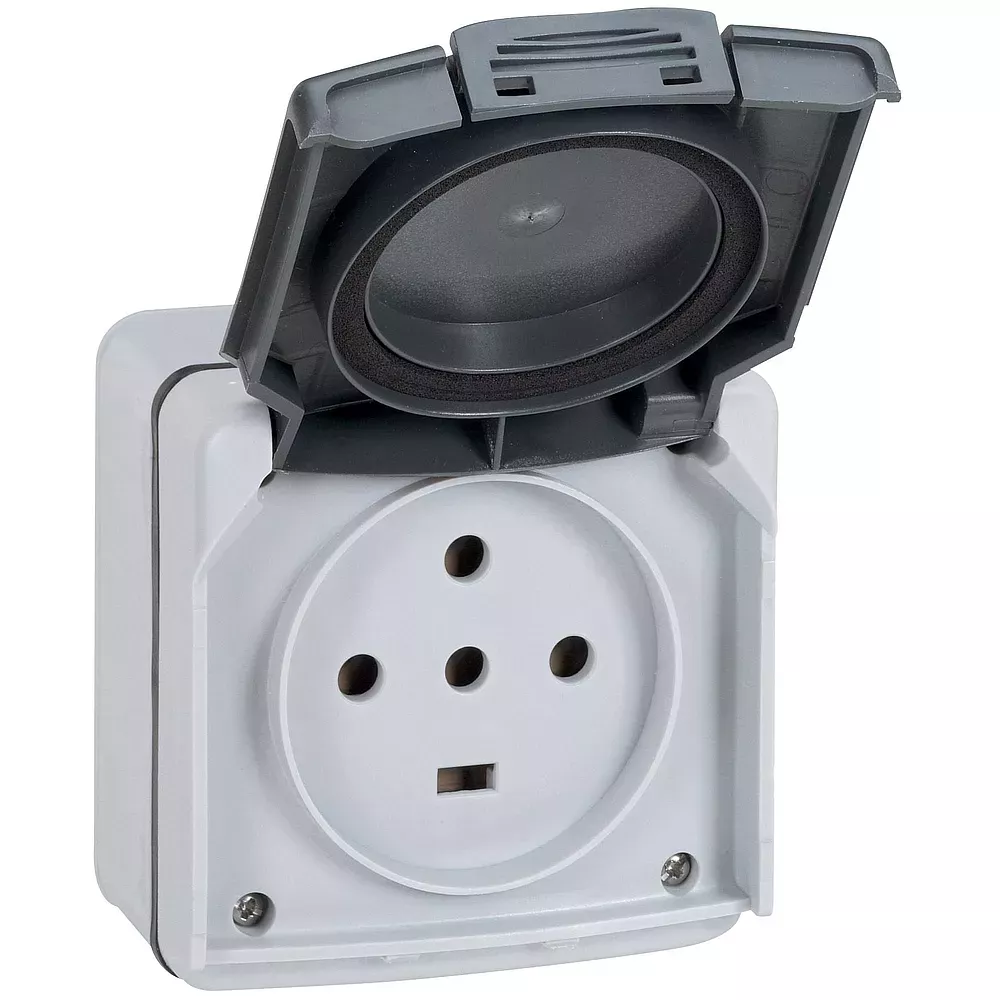 legrand-prise de courant de puissance saillie étanche - 20a - 4 alvéoles - gris (091437)