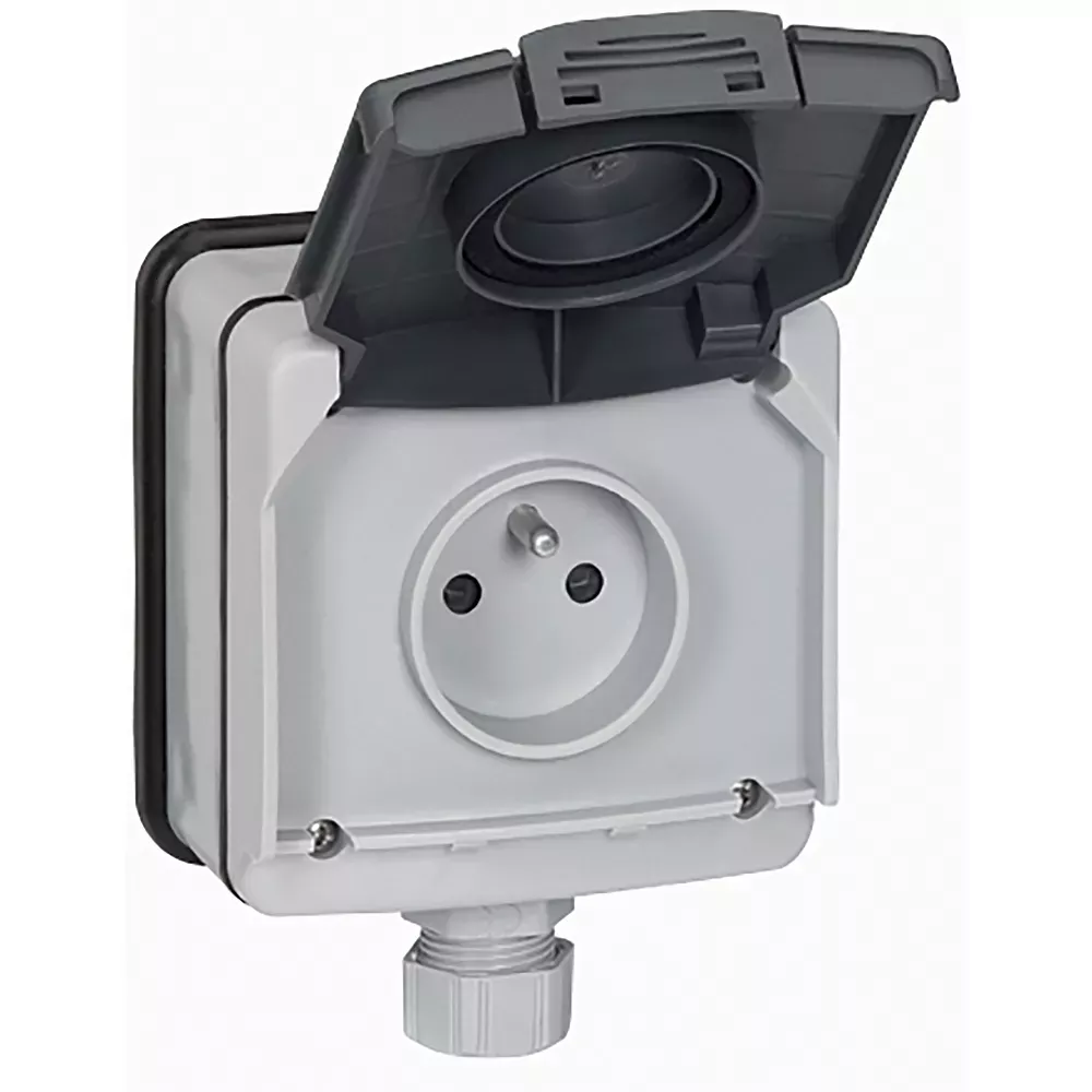 Prise de courant étanche 2P+T avec volet Plexo IP66 complet 16A 250V~ - gris