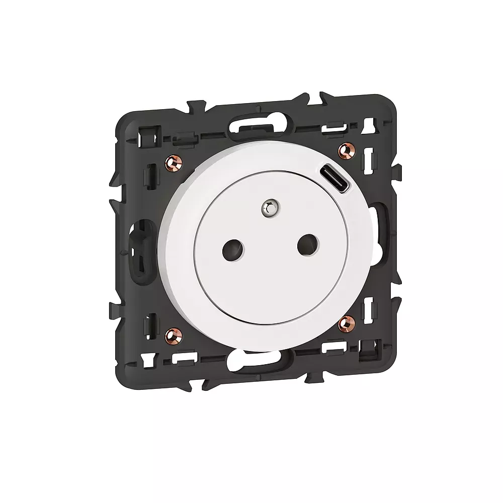 Prise Surface Céliane avec prise Type-C 1,5A - livrée avec support et enjoliveur finition blanc - à associer à une plaque Céliane