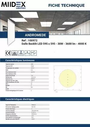 Caractéristiques techniques du panneau LED ANDROMEDE :