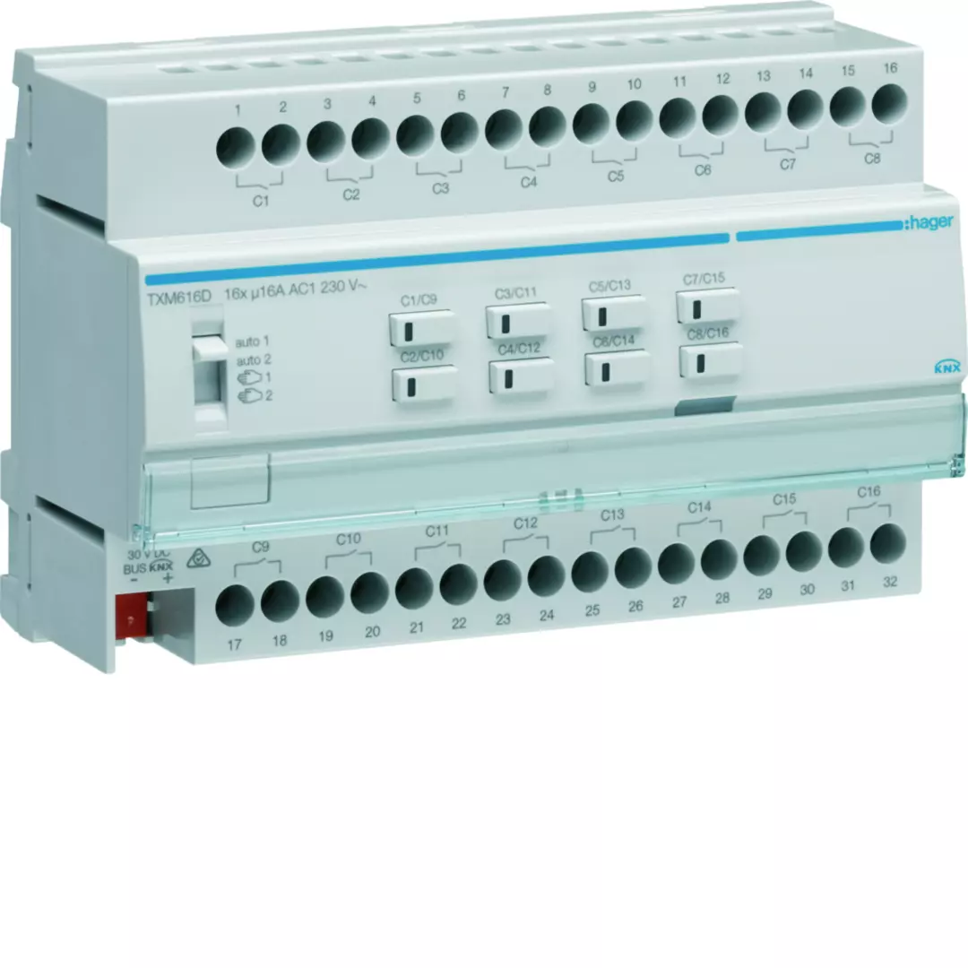 Accueil > Domotique - Maison connectes > Domotique KNX > Actionneurs > Module 16 sorties 16A/230V~ adapte pour charges capacitives / New Easy (TXM616D)