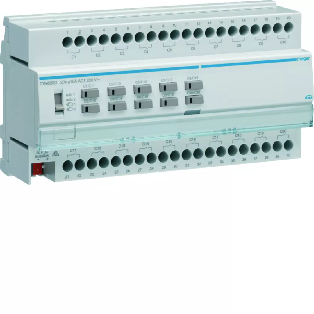 Accueil > Domotique - Maison connectes > Domotique KNX > Actionneurs > Module 20 sorties 16A/230V~ adapte pour charges capacitives (TYM620D)