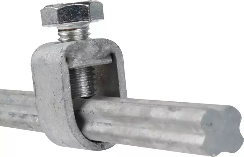 •Avec bride en acier galvanisé pour raccordement de la cablette de terre de grande section, avec très forte tenue au couple de serrage ( >3,5Nm). Livré bride monté sur le piquet