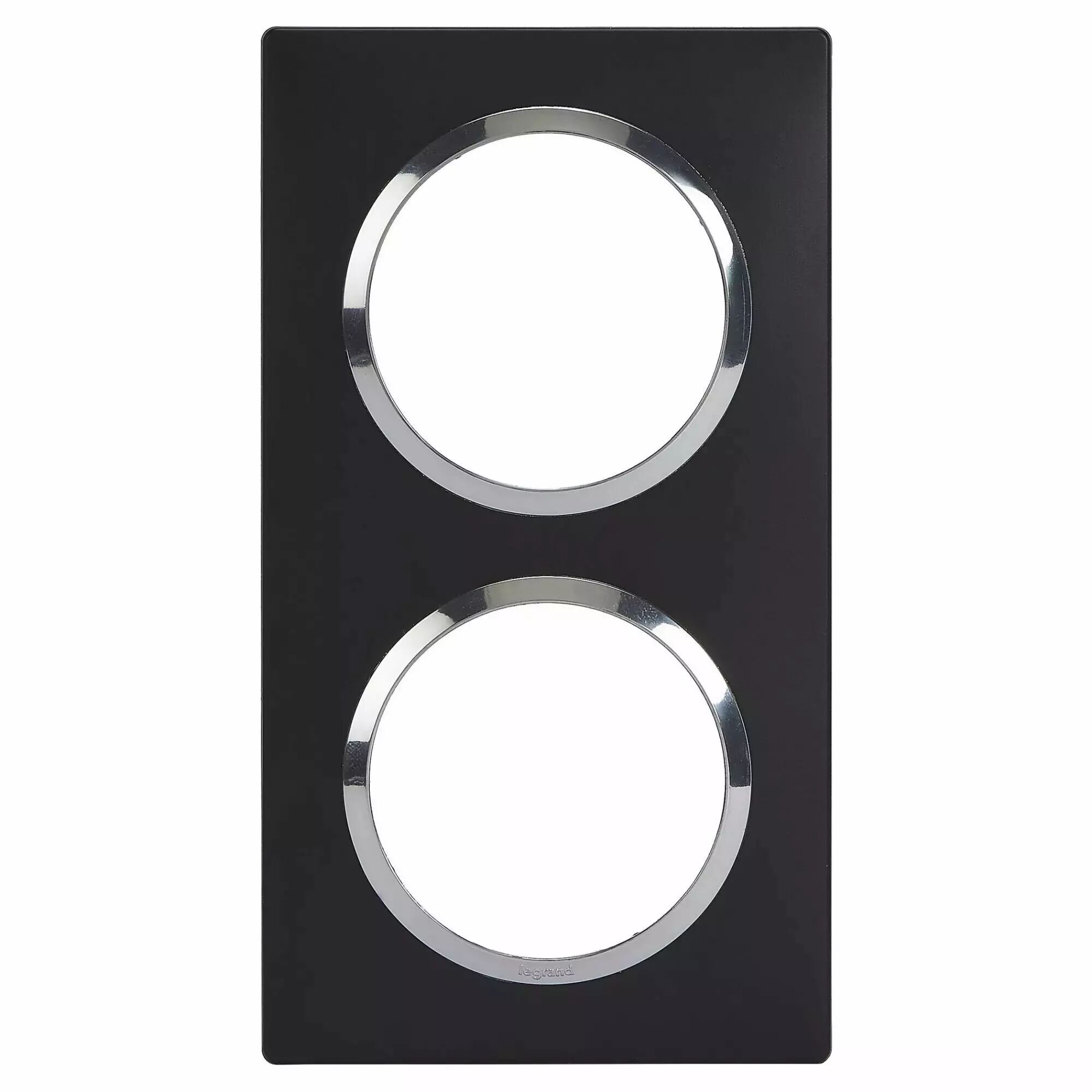 Réf. : LEG 600896 plaque carrée dooxie 2 postes finition noir bague chromé