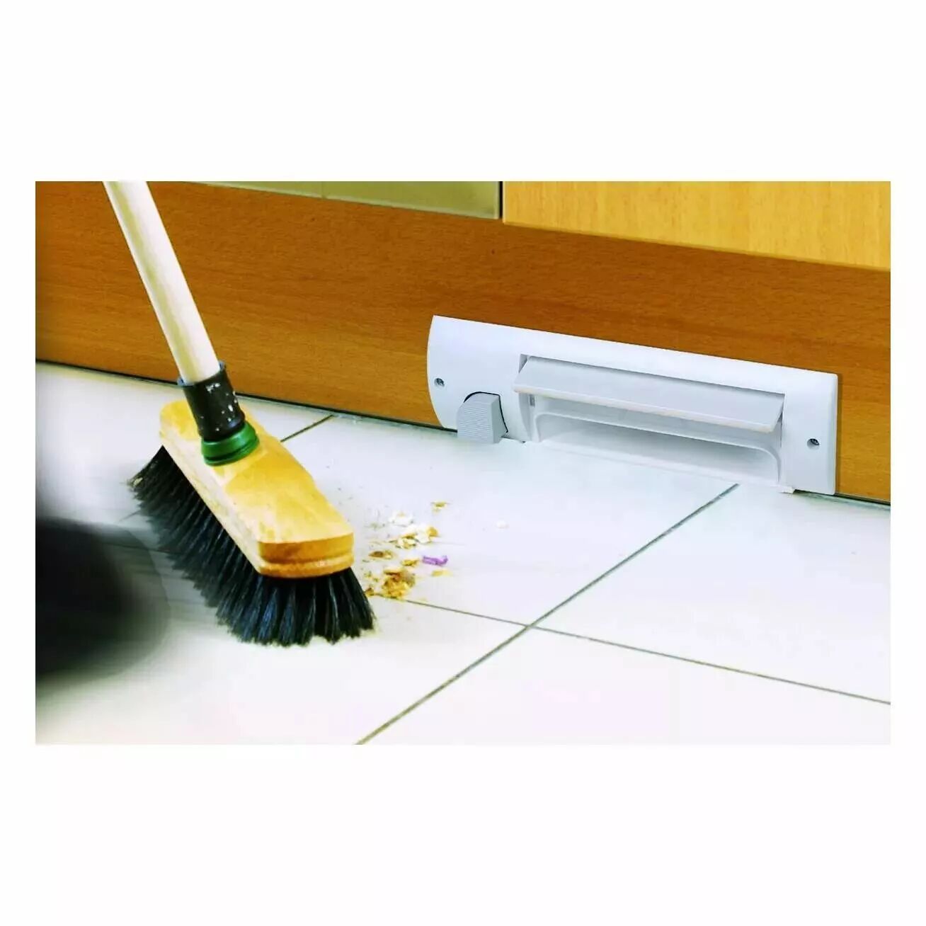 Réf. : ALD 11070019 Plinthe ramasse-miettes de couleur blanche démarrage par contact électrique en appuyant sur le bouton à l'aide du pied