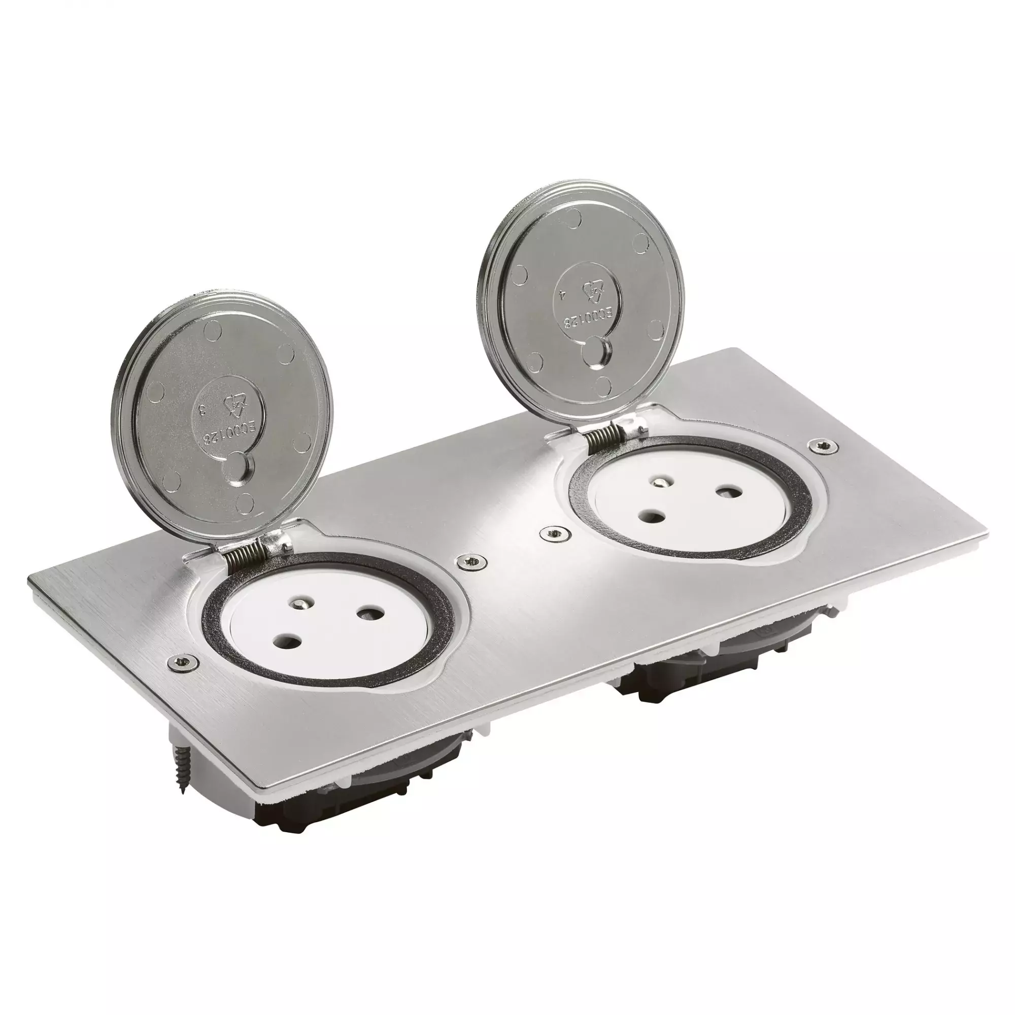Prise de sol double 2P+T Surface 16A 250V avec platine rectangulaire - inox brossé