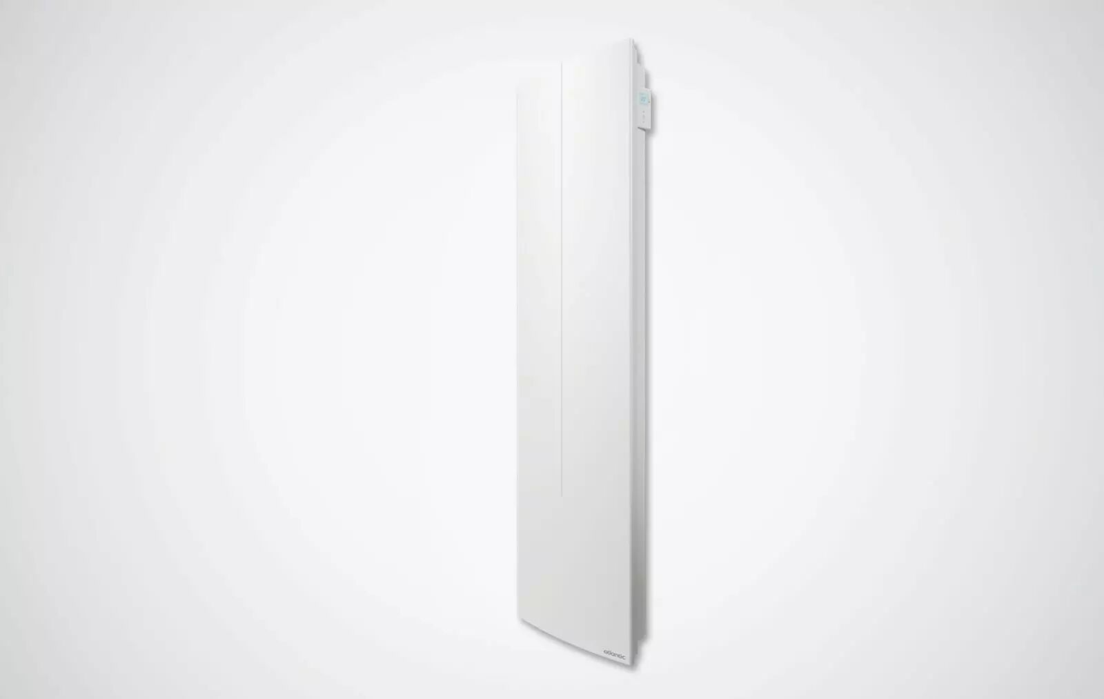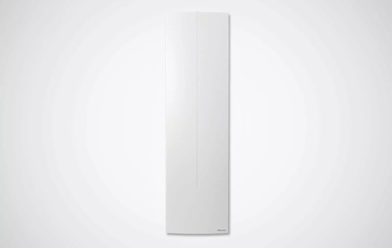 Radiateur digital Sokio vertical 1000W blanc, corps de chauffe en aluminium, gestion via application, indicateur de consommation, détection d'ouverture de fenêtre, disponible en 2 formats, puissances de 1000W à 2000W, couleur blanc (RAL 9016).