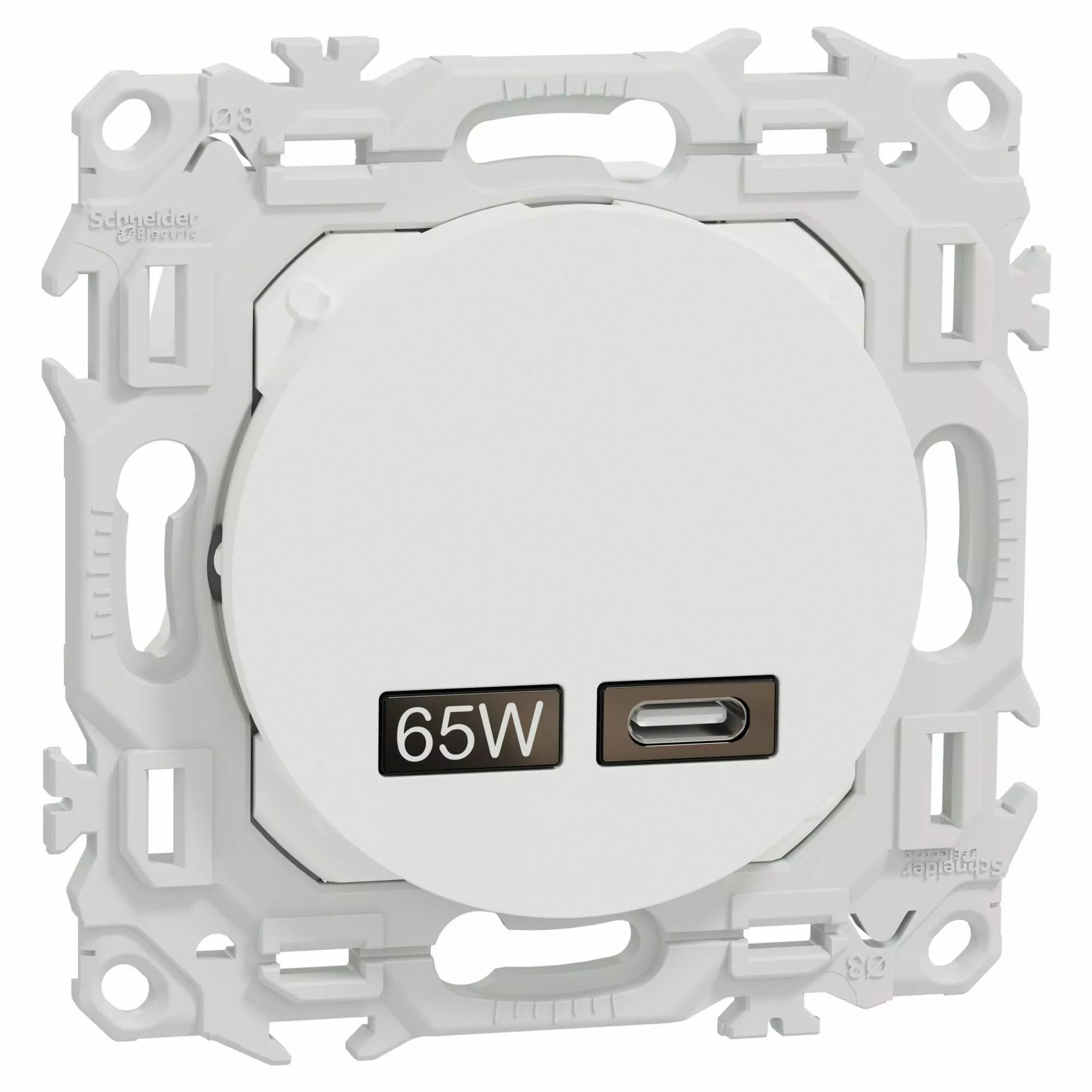• SCHNEIDER ELECTRIC - Odace - chargeur USB-C 65W - forte puissance et charge rapide - blanc craie (S920406)