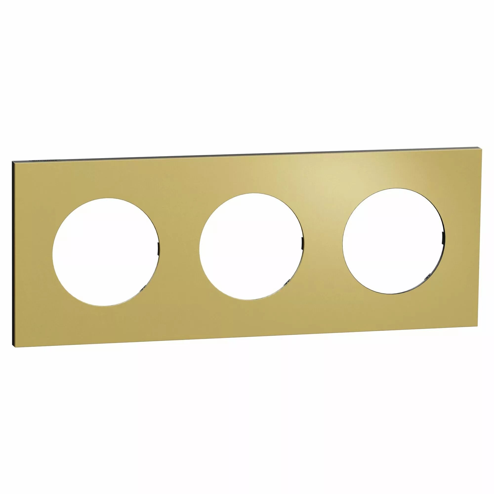 • SCHNEIDER ELECTRIC - Odace Métal - plaque de finition 3 postes - effet Laiton support noir (S916706)