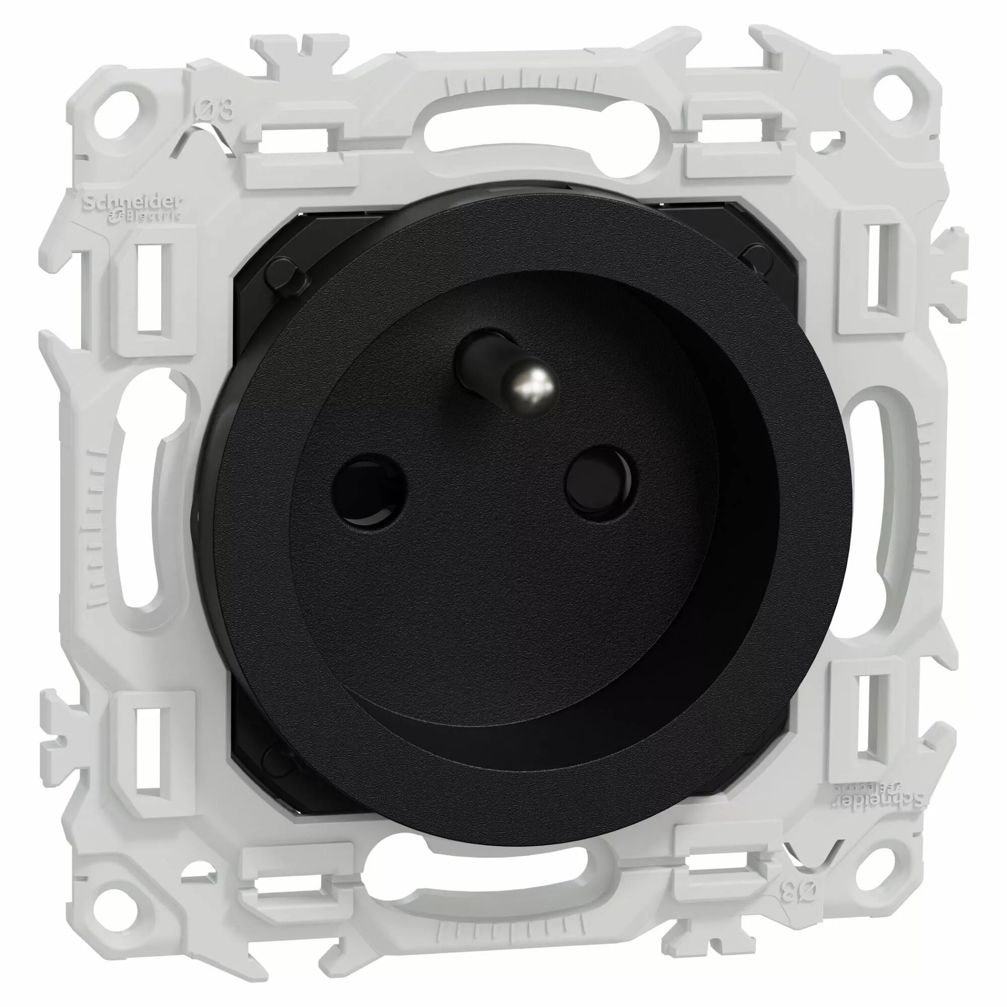 Accueil > Appareillage > Interrupteurs et prises > Interrupteurs et prises Schneider > Gamme Odace 2025 > SCHNEIDER ELECTRIC - Odace - prise 2P+T rénovation à puits - 4 bornes auto par pôle - noir onyx (S940049)