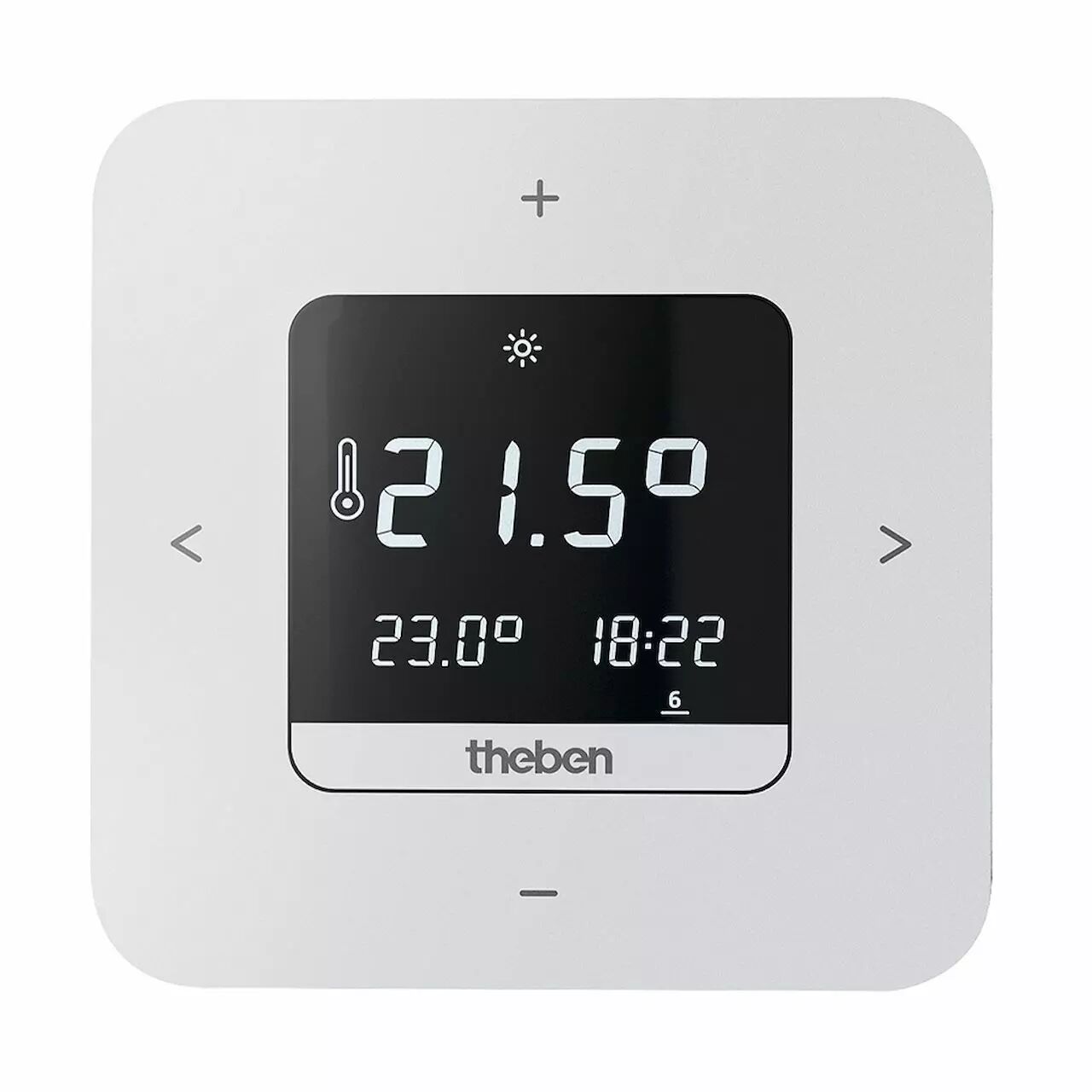 - Entrée externe pour le raccordement flexible au choix d'un capteur de température ambiante externe, d'un capteur de sol, d'un détecteur de mouvement ou d'un contact téléphonique